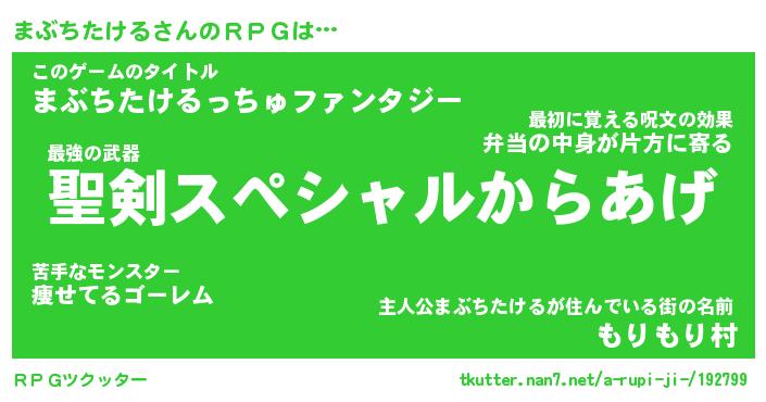 | 伝説のあだ名 | 『伝説の竜騎士まぶちたける』 |