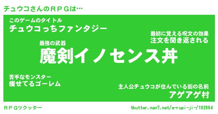 | ファンタジー風あだ名 | 『チュフェル』『エターナルチュウコー』 |