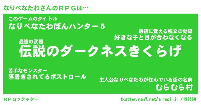 | 男性向けラノベタイトル風あだ名 | 『なりべなたわの憂鬱』 |