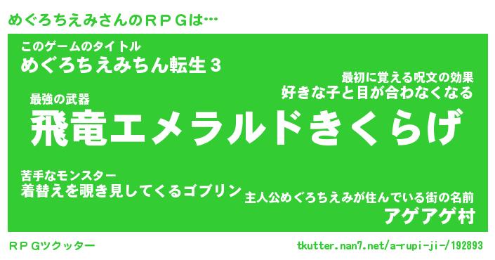 | 伝説のあだ名 | 『封印されしスナイパーめぐろちえみ』 |