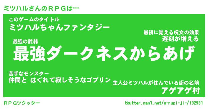 | ファンタジー風あだ名 | 『ミツフェル』『エターナルミツハルー』 |