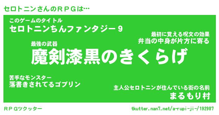| 伝説のあだ名 | 『伝説のスナイパーセロトニン』 |