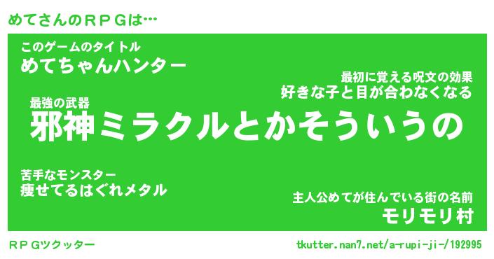 | 胡散臭い通販商品みたいなあだ名 | 『億万長者になれるブレスレット…その名も「めて」』 |