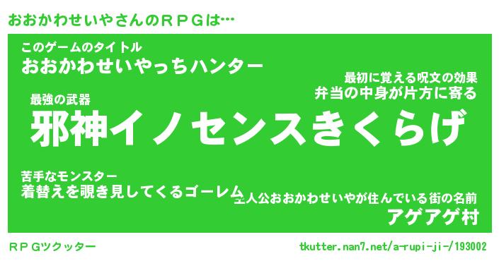 | 胡散臭い通販商品みたいなあだ名 | 『億万長者になれる霊験あらたかなお札…その名も「おおかわせいや」』 |