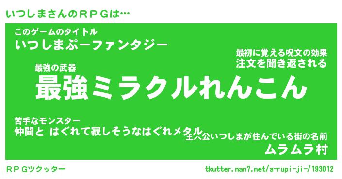 | ファンタジー風あだ名 | 『イツフェル』『エターナルイツシマー』 |