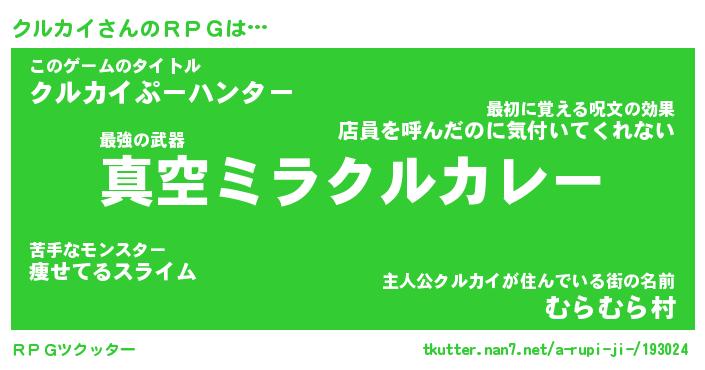 | ファンタジー風あだ名 | 『クルフェル』『エターナルクルカイー』 |