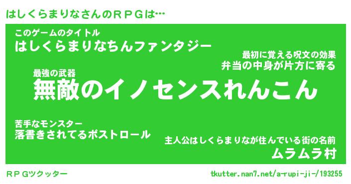| 胡散臭い通販商品みたいなあだ名 | 『モテモテ間違いなし霊験あらたかなお札…その名も「はしくらまりな」』 |