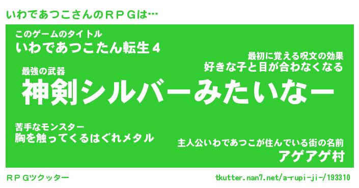 | 伝説のあだ名 | 『不死鳥の傭兵いわであつこ』 |