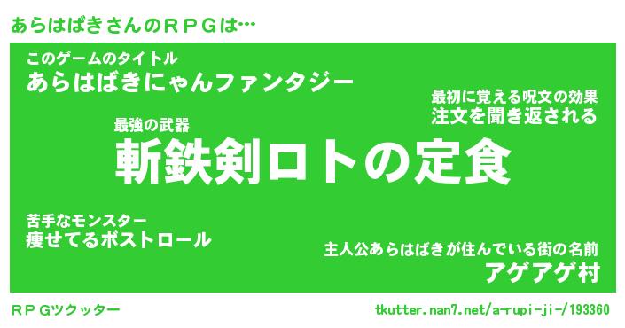 | 男性向けラノベタイトル風あだ名 | 『あらはばきの憂鬱』 |