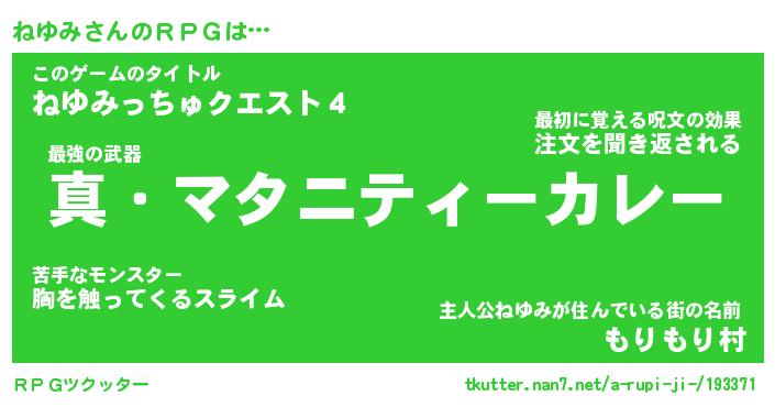 | ファンタジー風あだ名 | 『ネユフェル』『エターナルネユミー』 |
