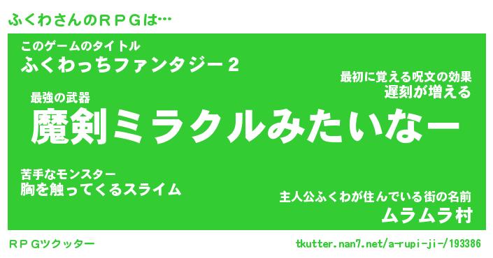 | 伝説のあだ名 | 『伝説の竜騎士ふくわ』 |
