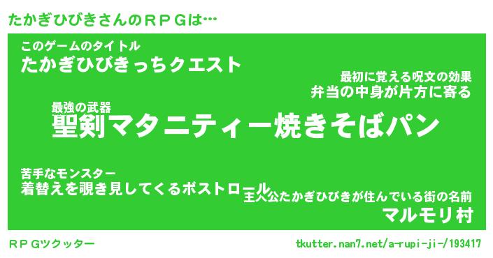 | 胡散臭い通販商品みたいなあだ名 | 『必ず成功する霊験あらたかなお札…その名も「たかぎひびき」』 |