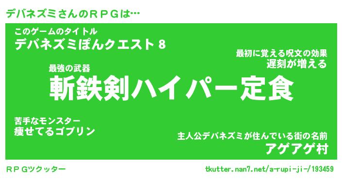 | ファンタジー風あだ名 | 『デバフェル』『エターナルデバネズミー』 |