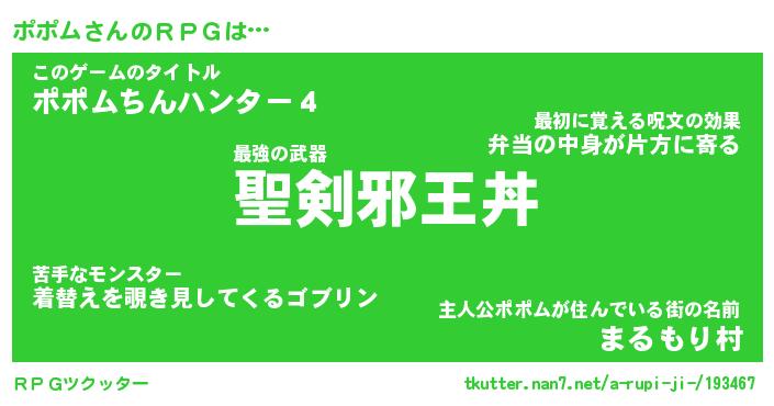 | 男性向けラノベタイトル風あだ名 | 『ポポムの憂鬱』 |