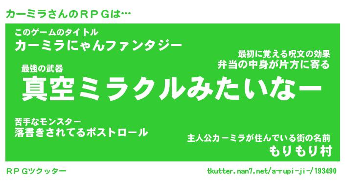 | ファンタジー風あだ名 | 『カーフェル』『エターナルカーミラー』 |
