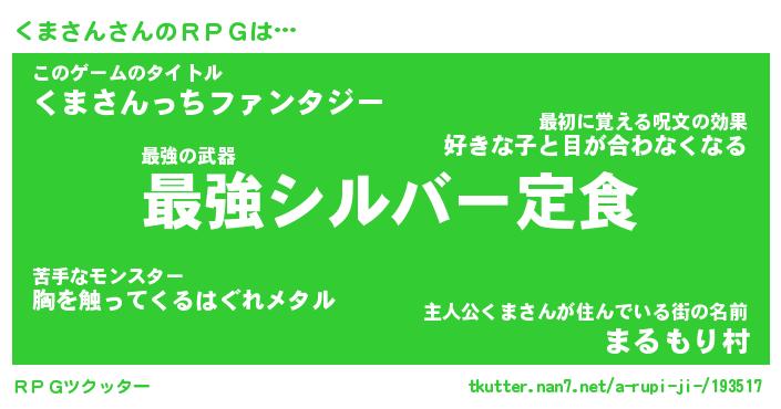 | 男性向けラノベタイトル風あだ名 | 『クマサンアートオンライン』 |