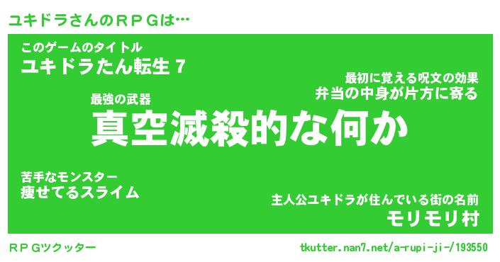 | 男性向けラノベタイトル風あだ名 | 『ユキドラアートオンライン』 |