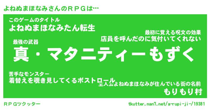 | 欧米人風あだ名 | 『マイケルよねぬまほなみ』 |