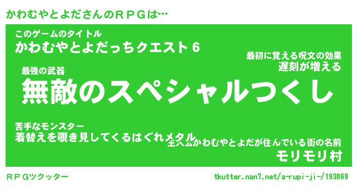 | 胡散臭い通販商品みたいなあだ名 | 『億万長者になれるブレスレット…その名も「かわむやとよだ」』 |