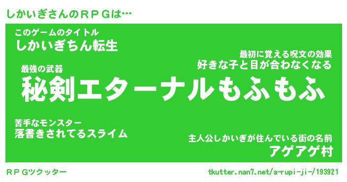 | 胡散臭い通販商品みたいなあだ名 | 『必ず成功する水晶球…その名も「しかいぎ」』 |