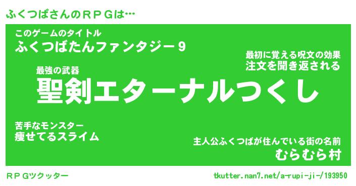 | ヒーロー風カッコイイあだ名 | 『スーパーフクツバ』『黄金騎士フク』 |