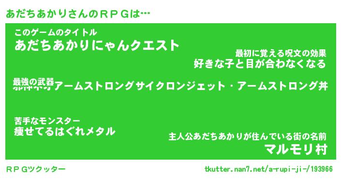 | 伝説のあだ名 | 『封印されし竜騎士あだちあかり』 |