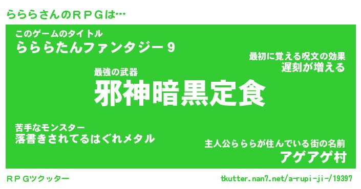 | 伝説のあだ名 | 『封印されし傭兵ららら』 |