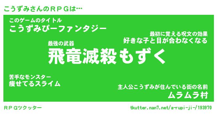 | ファンタジー風あだ名 | 『コウフェル』『エターナルコウズミー』 |