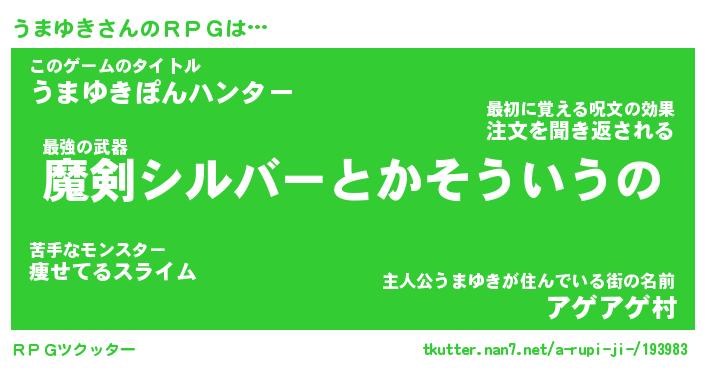 | 伝説のあだ名 | 『伝説の傭兵うまゆき』 |