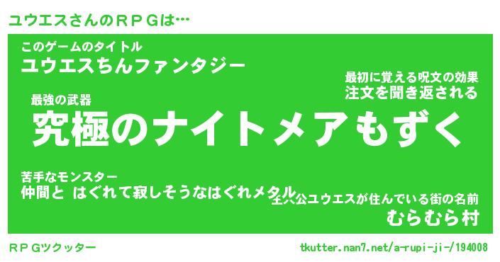 | ファンタジー風あだ名 | 『ユウフェル』『エターナルユウエスー』 |