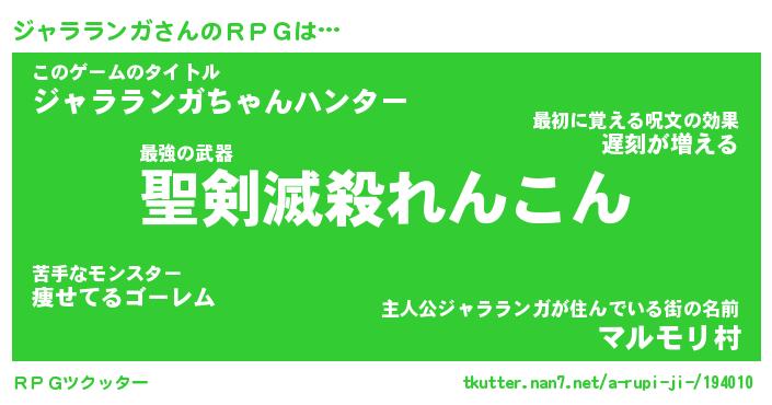 | 男性向けラノベタイトル風あだ名 | 『ジャラランガの憂鬱』 |