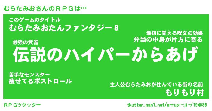 | ファンタジー風あだ名 | 『ムラフェル』『エターナルムラタミオー』 |