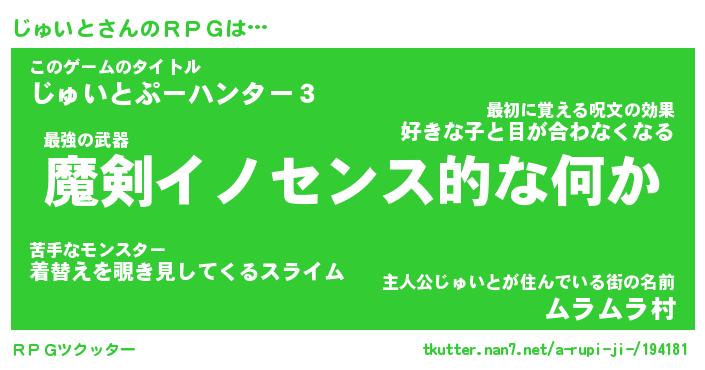 | ファンタジー風あだ名 | 『ジュフェル』『エターナルジュイトー』 |