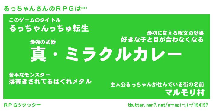 | ヒーロー風カッコイイあだ名 | 『スーパールッチャン』『銀牙騎士ルッ』 |