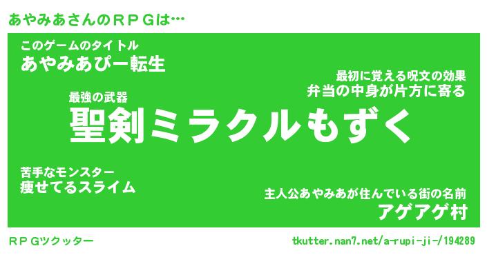 | ファンタジー風あだ名 | 『アヤフェル』『エターナルアヤミアー』 |