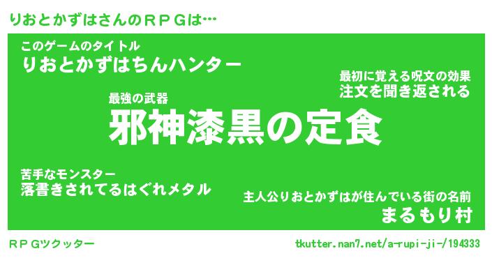 | 男性向けラノベタイトル風あだ名 | 『リオトカズハアートオンライン』 |