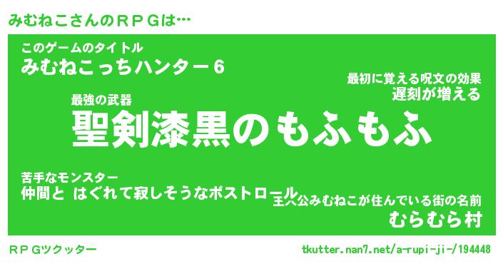 | ファンタジー風あだ名 | 『ミムフェル』『エターナルミムネコー』 |