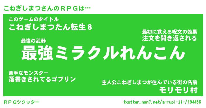 | 女子向けラノベタイトル風あだ名 | 『こねぎしまつ姫と円卓の騎士』 |