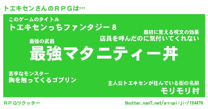 | ヒーロー風カッコイイあだ名 | 『スーパートエキセン』『銀牙騎士トエ』 |