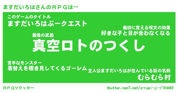| 男性向けラノベタイトル風あだ名 | 『マスダイロハアートオンライン』 |