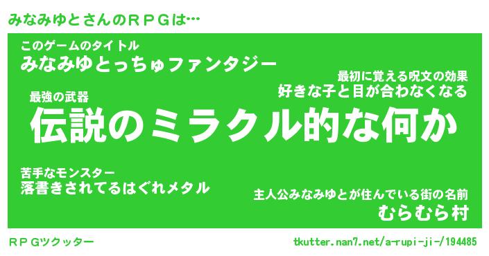 | ファンタジー風あだ名 | 『ミナフェル』『エターナルミナミユトー』 |