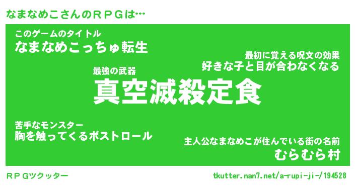 | ファンタジー風あだ名 | 『ナマフェル』『エターナルナマナメコー』 |