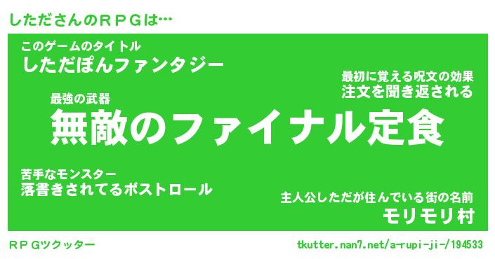 | ファンタジー風あだ名 | 『シタフェル』『エターナルシタダー』 |