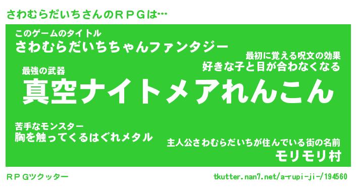 | ヒーロー風カッコイイあだ名 | 『スーパーサワムラダイチ』 |
