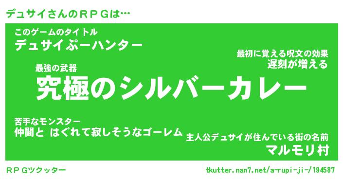 | 男性向けラノベタイトル風あだ名 | 『デュサイアートオンライン』 |