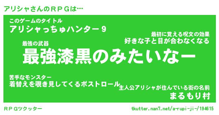 | 男性向けラノベタイトル風あだ名 | 『アリシャアートオンライン』 |
