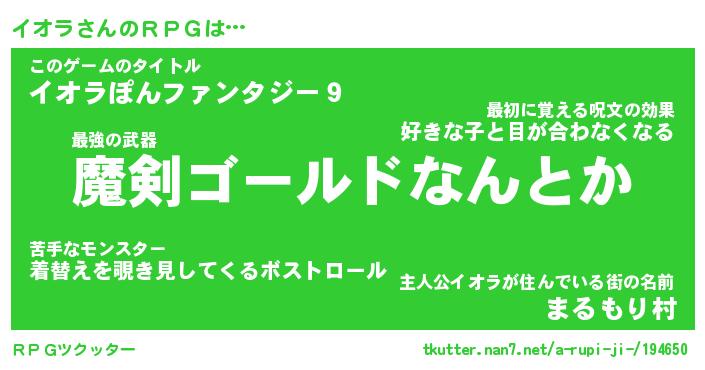 | ファンタジー風あだ名 | 『イオフェル』『エターナルイオラー』 |