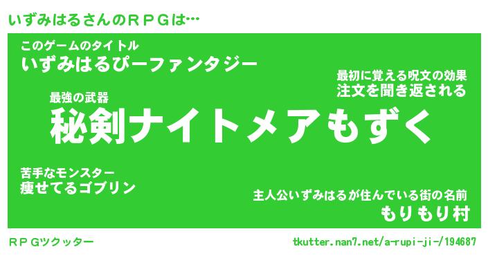 | ファンタジー風あだ名 | 『イズフェル』『エターナルイズミハルー』 |