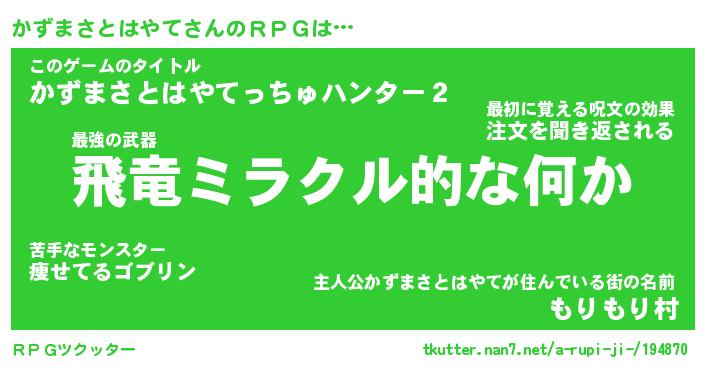 | 伝説のあだ名 | 『封印されし竜騎士かずまさとはやて』 |