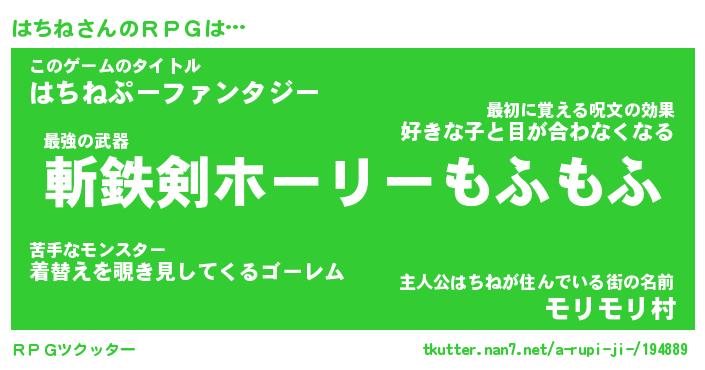 | ファンタジー風あだ名 | 『ハチフェル』『エターナルハチネー』 |